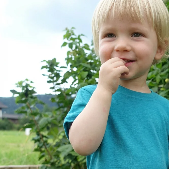Koszulka z wełny merino jest całoroczna i uniwersalna. Nadaje się na każdą porę roku, zarówno do spodenek jak i pod cieplejszą bluzę. Do przedszkola, szkoły a nawet jako piżama.